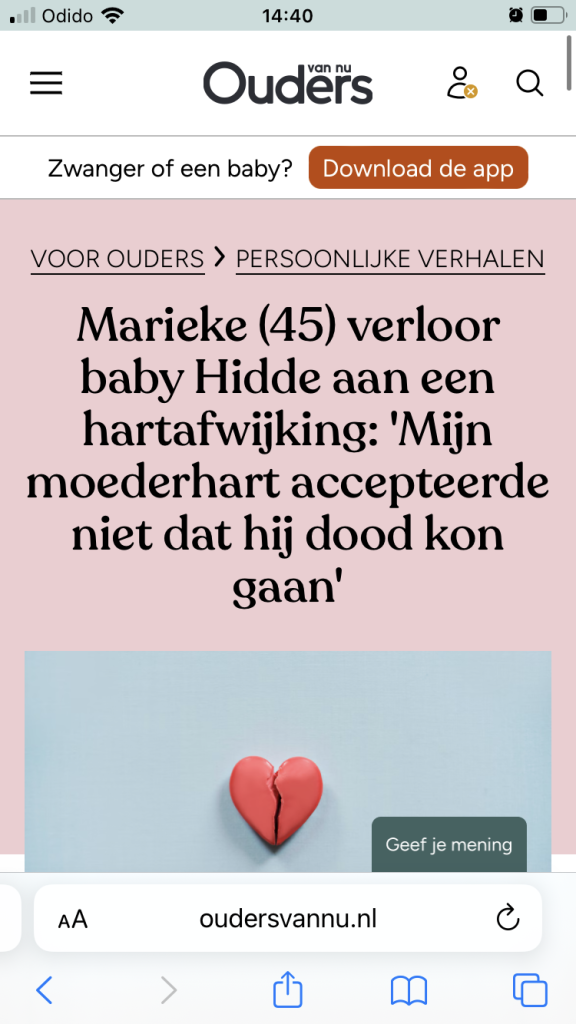 Een zeer persoonlijk artikel verscheen op zaterdag 17 mei 2025 in het AD/Haagsche Courant. En later die dag op AD en alle regionale kranten online. Twee pagina’s maar liefst. Over diepe rouw, geluk vinden in kleine dingen, mijn dierbare gezin en mijn roeping: Stichting Hidde Helpt. Ik (Marieke) ben er heel trots op, dat uit de hele heftige en verdrietige dingen die wij als gezin meemaakten, goede dingen voortkomen. En dankbaar, dat het mij gegeven is om dit te doen.